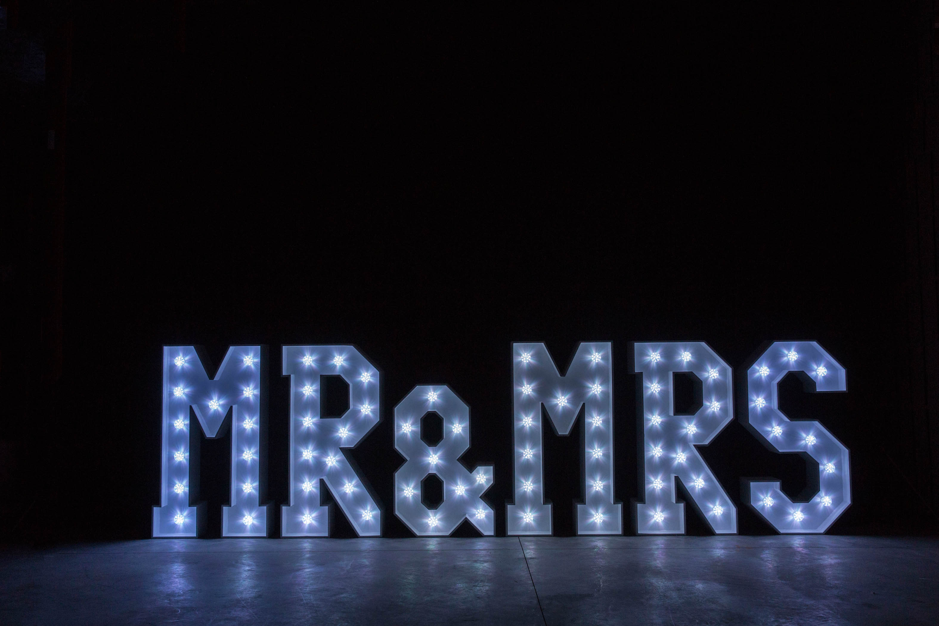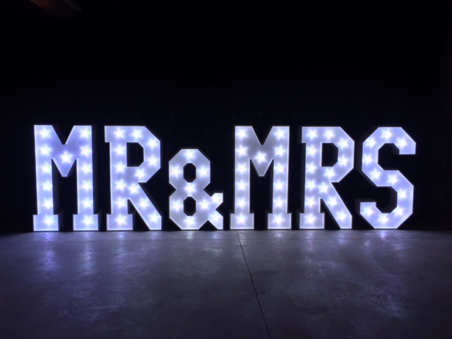 We are now offering the Light Up Letters in LOVE, MR & MRS, MR & MR or MRS & MRS.  You can view many photo’s of these designs at the top of this page.