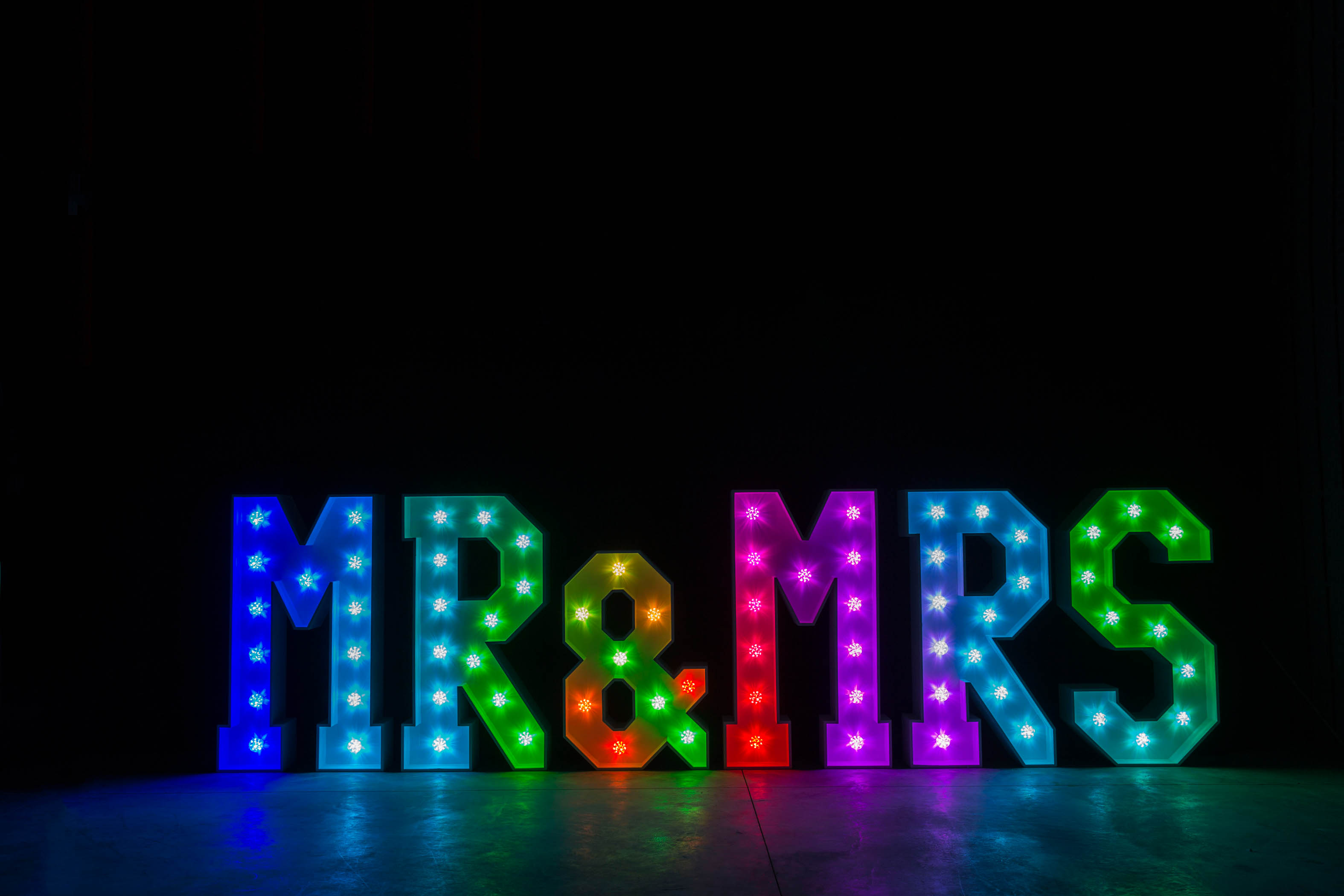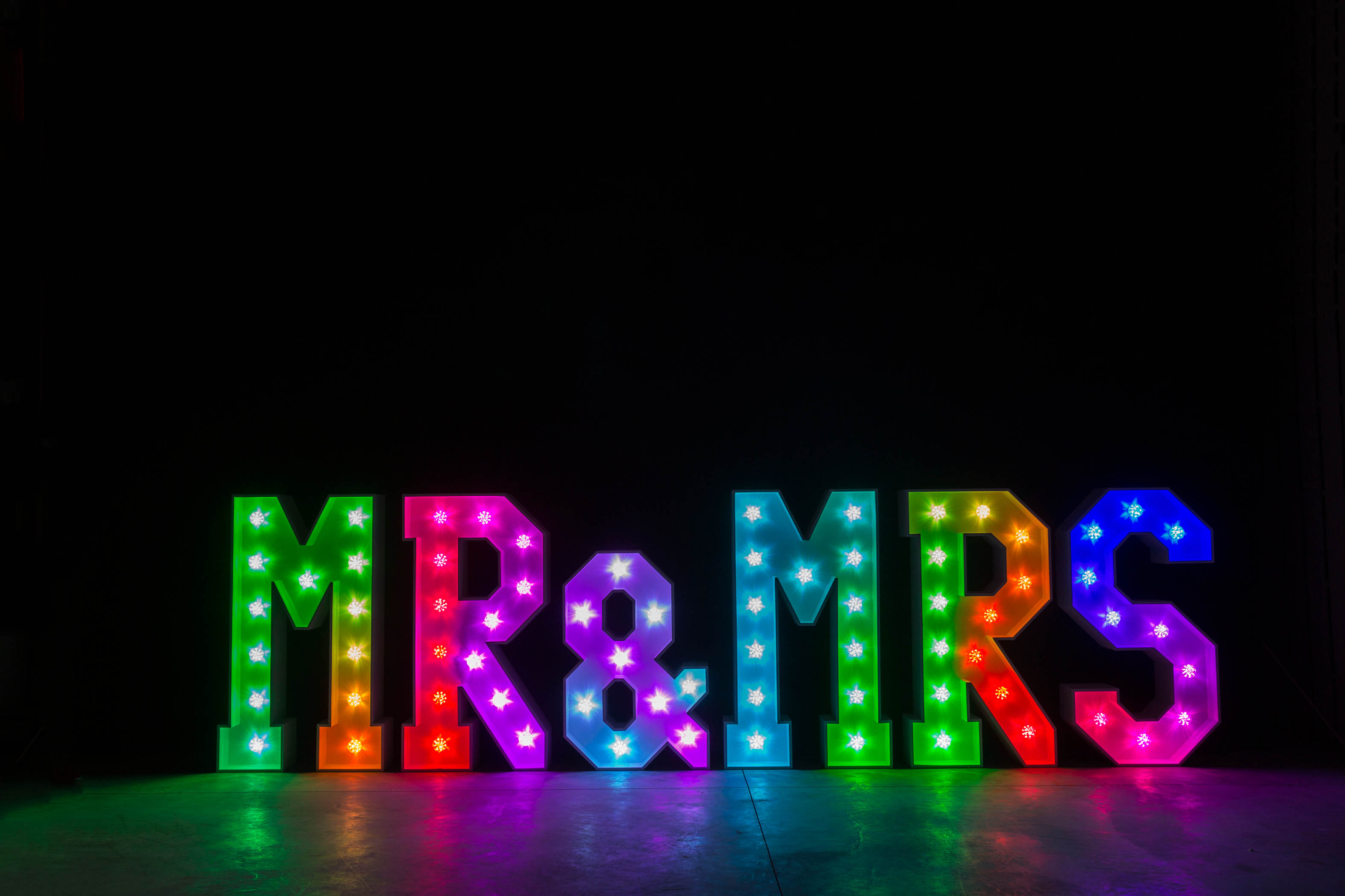 We are now offering the Light Up Letters in LOVE, MR & MRS, MR & MR or MRS & MRS. You can view many photo’s of these designs at the top of this page.
