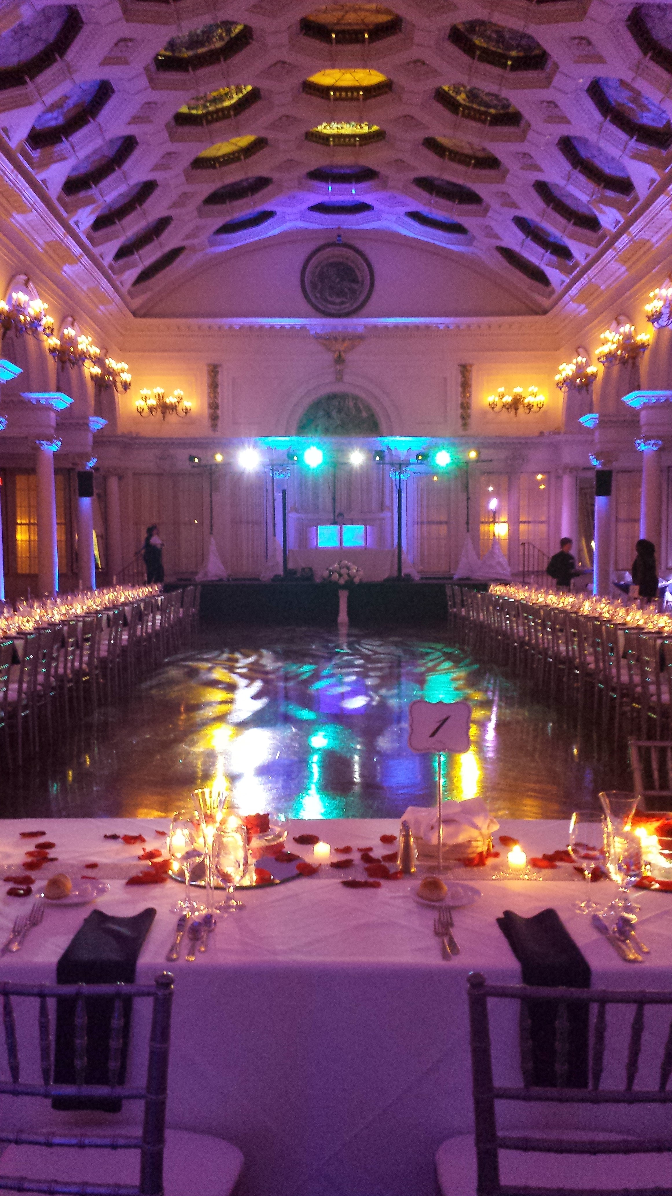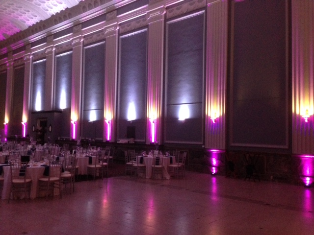 I started offering Up Lighting in July of 2010 to all of the Brides & Grooms whose weddings I am DJing. The response has been fantastic! Up Lighting will definitely enhance your Wedding Venue’s Ballroom on your wedding day, with your Wedding Colors! It will give your Ballroom your own vibe and make your wedding reception different from anyone else’s.
